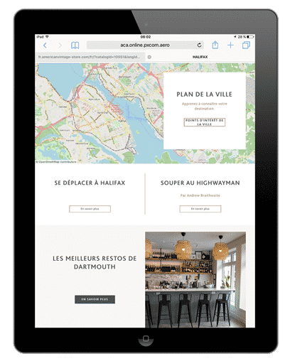 Air Canada approached PXCom requiring and full end-to-end solution for its corporate and destination services sections to be deployed across the Boeing 737 MAX fleet. It has been vital for the solution to be seamlessly integrated into the IFE software with the aim to enable Air Canada’s CSP to create and upload the entire content set. Moreover, the airline required the solution to provide its passengers with digital features such as call-to-action for activity booking and social network sharing. Last but not least, Air Canada required a highly flexible advertising platform that would enable the airline’s advertising partners to seamlessly add new editorial templates, sections, and other content featured on board.