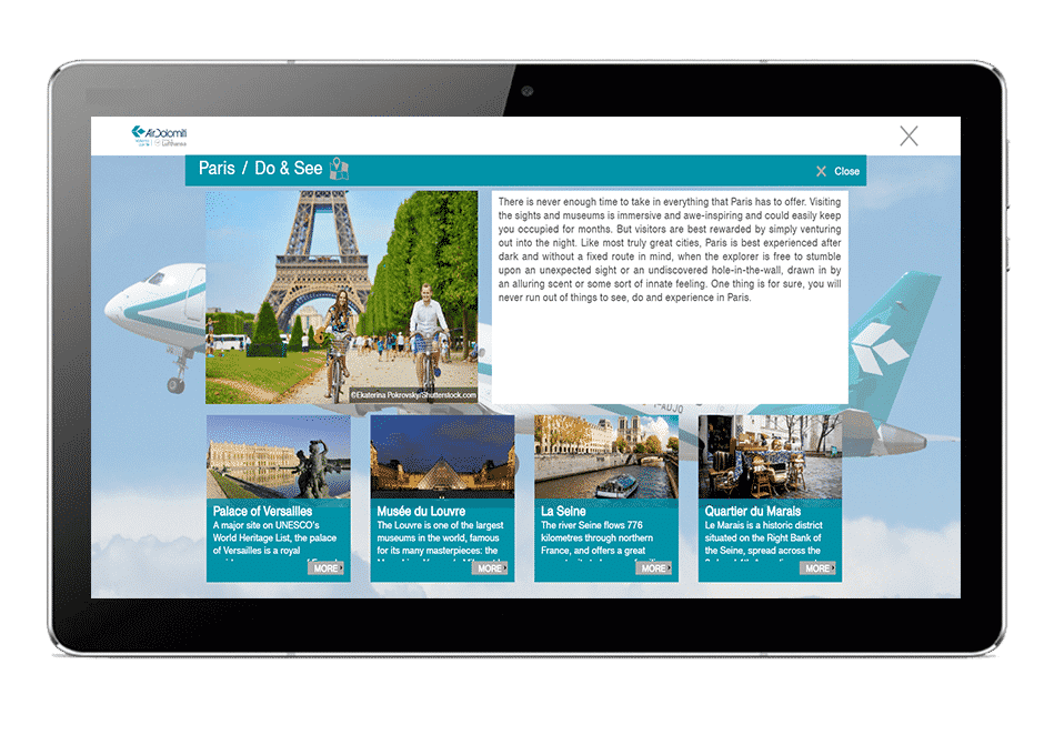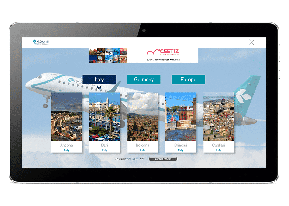 PXCom’s platform has been able to significantly amplify Air Dolomiti’s passenger experience onboard. Passengers can now enjoy a wide range of destination services listings on all routes operated. The airline has been able to leverage the destination services features in accordance with the seasonal changes to its network. Further, the Airline has been, at the click of a button, adding new sections in the interactive destination guides as well as sponsored videos, opening up significant new revenue streams, in a highly cost-effective manner. Based on this success, Air Dolomiti has additionally decided to roll out AirSAS, PXCom’s digital inflight ad-serving solution.