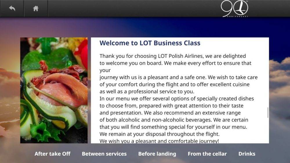 The Airline wanted to digitize its meal menu cards and integrate them as an interactive app available on their IFE seatback screen. The function of the app was to display the accurate catered menu, and beverage offering according to the passengers’ seat class, aircraft route, and the GUI language. Due to the massive network operations what was required was a fully automated process.